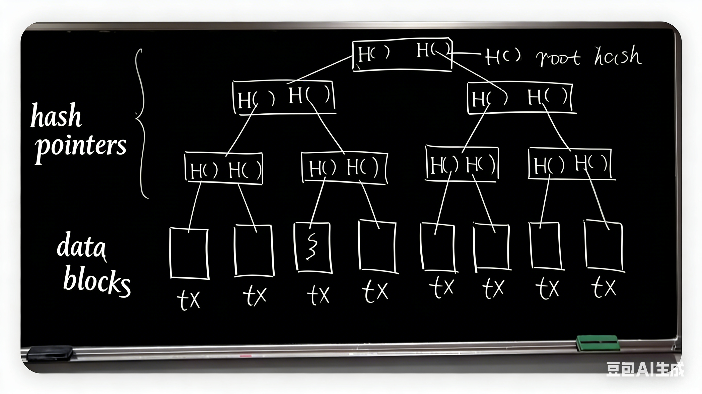 Merkle Tree 可以看作是哈希指针的一种高级应用(将线性的链表扩展为树状结构)。